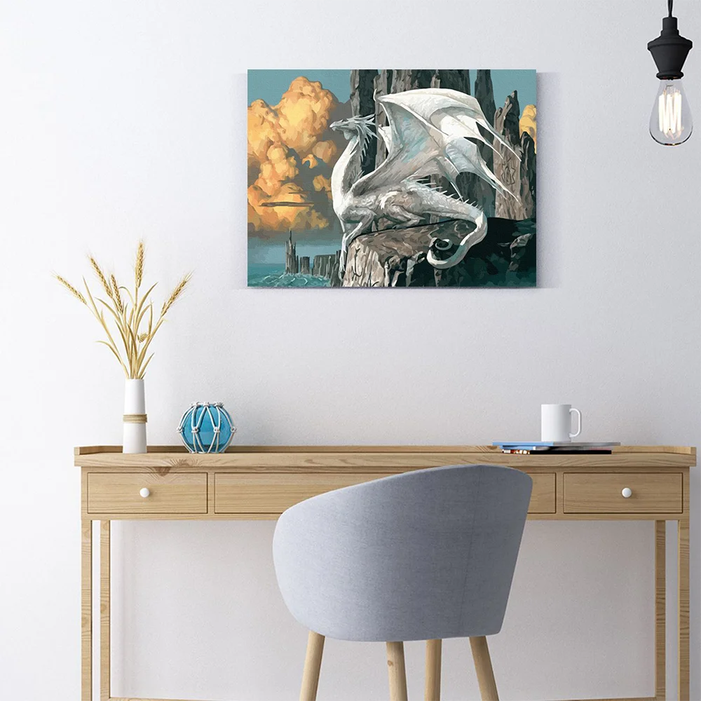 A vásznon lévő számot fesd ki a hozzá tartozó festékkel. Ahogy készül a festmény, szépen lassan kirajzolódik az általad választott kép.
