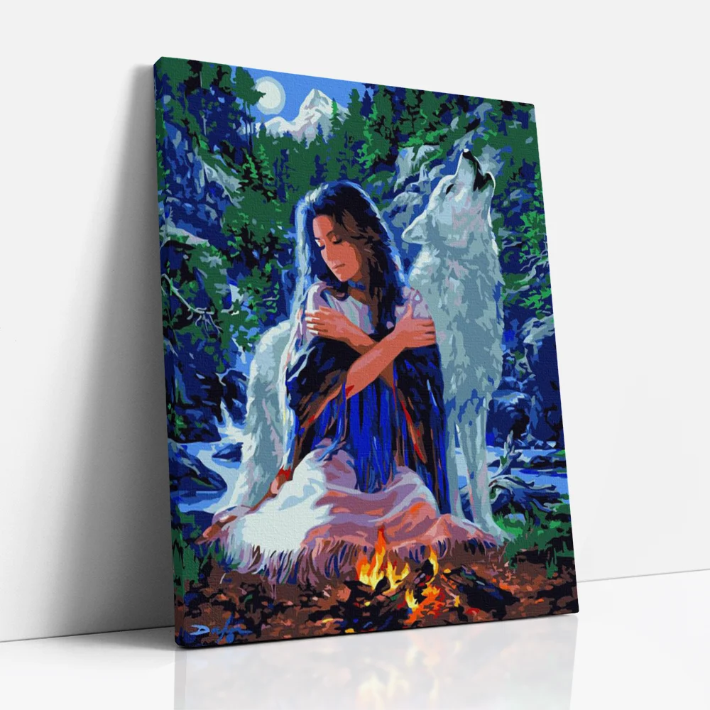 Indián lány a tűznél - számfestő készlet