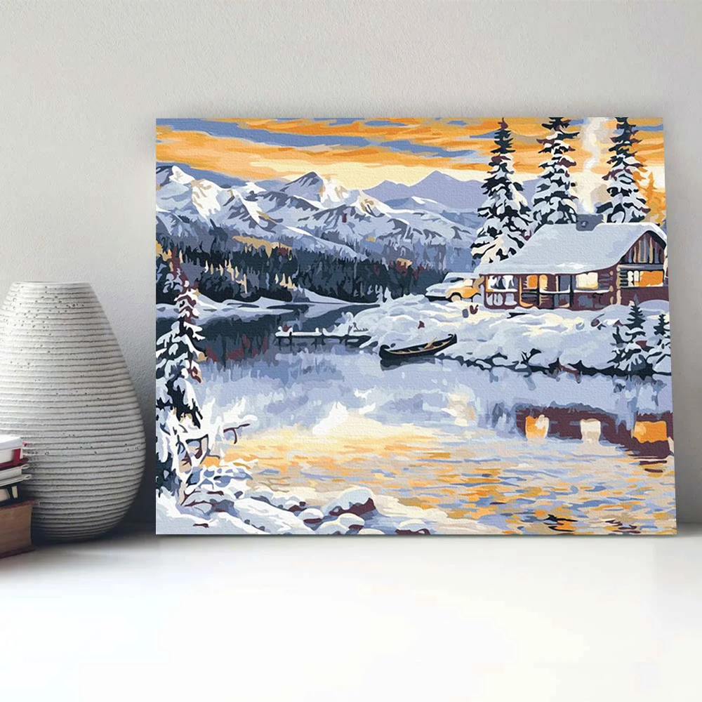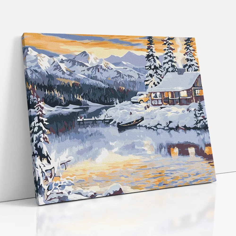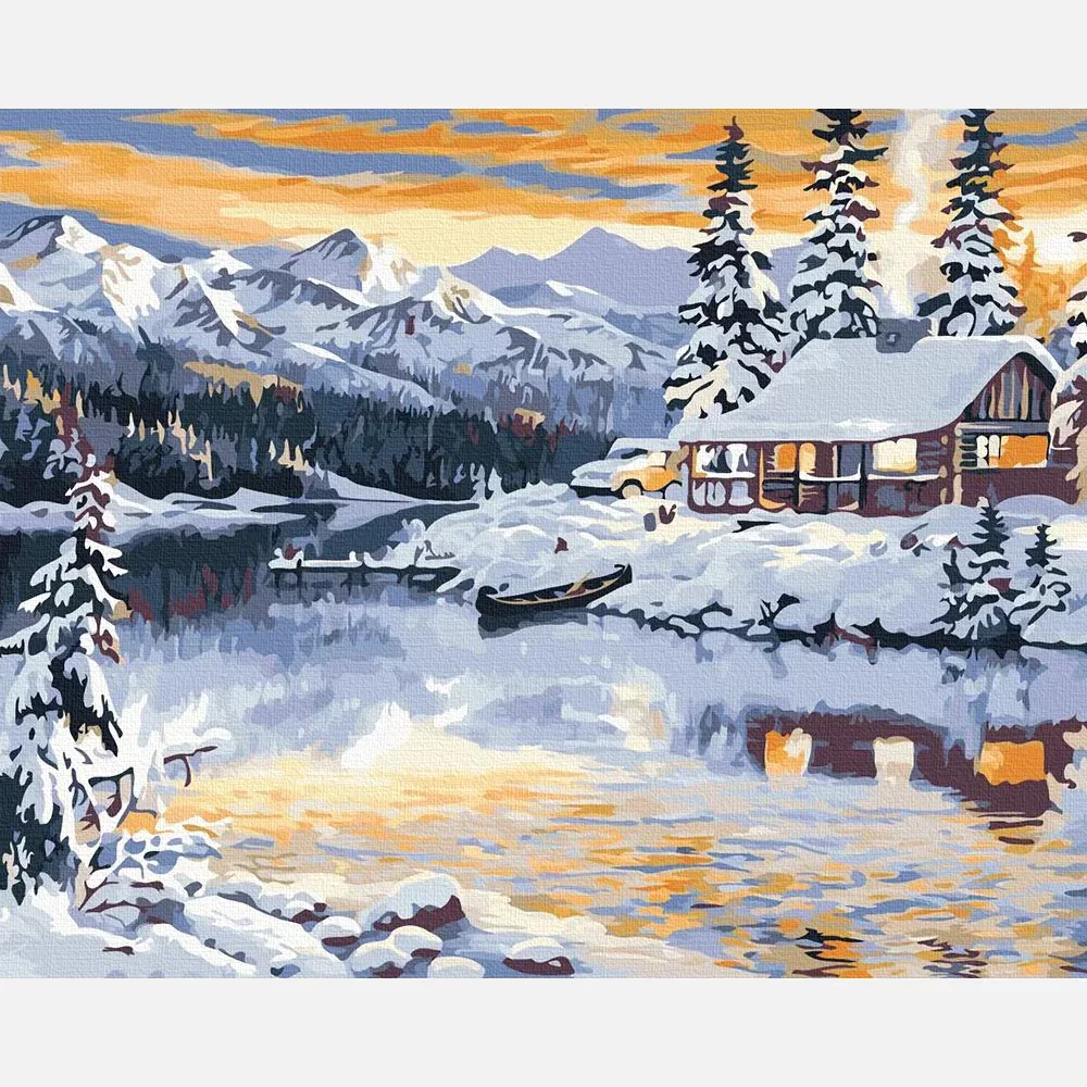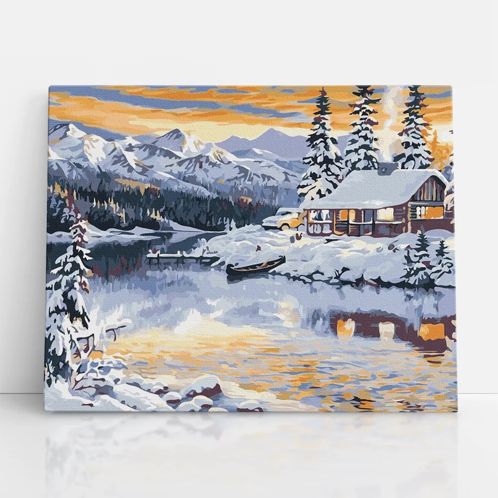 Téli ház a hegyek között - számfestő készlet