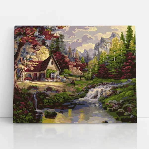 házikó a folyóparton számfestő szembőlházikó a folyóparton számfestő oldalról