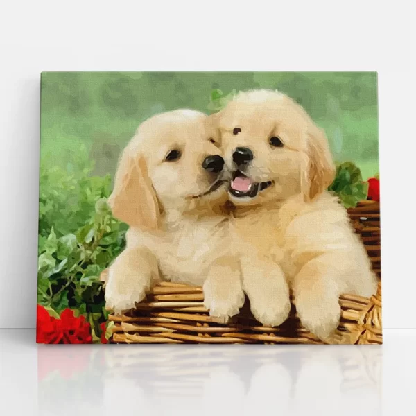 kölyök golden retriverek a kosárban számfestő szembőlkölyök golden retriverek a kosárban számfestő oldalról