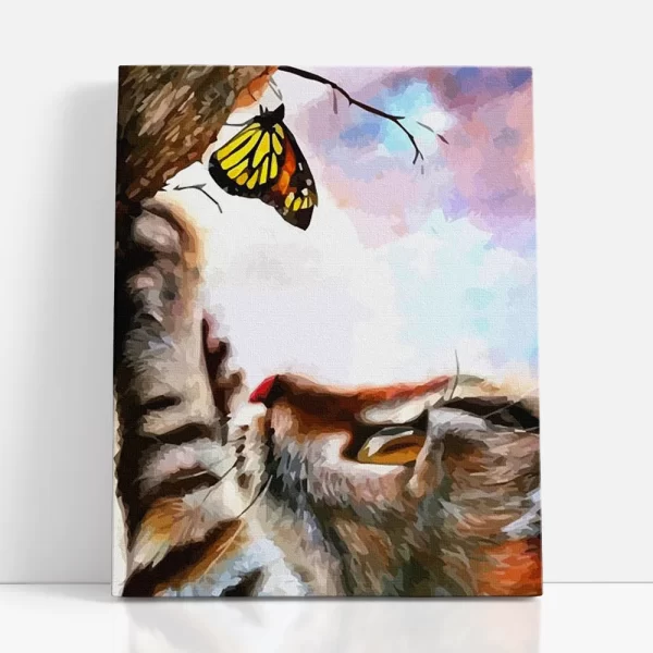 cica és pillangó barátság számfestő szembőlcica és pillangó barátság számfestő oldalról