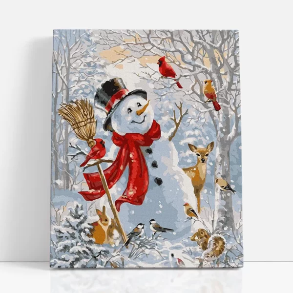 erdei állatkák hóemberrel számfestő szembőlerdei állatkák hóemberrel számfestő oldalról
